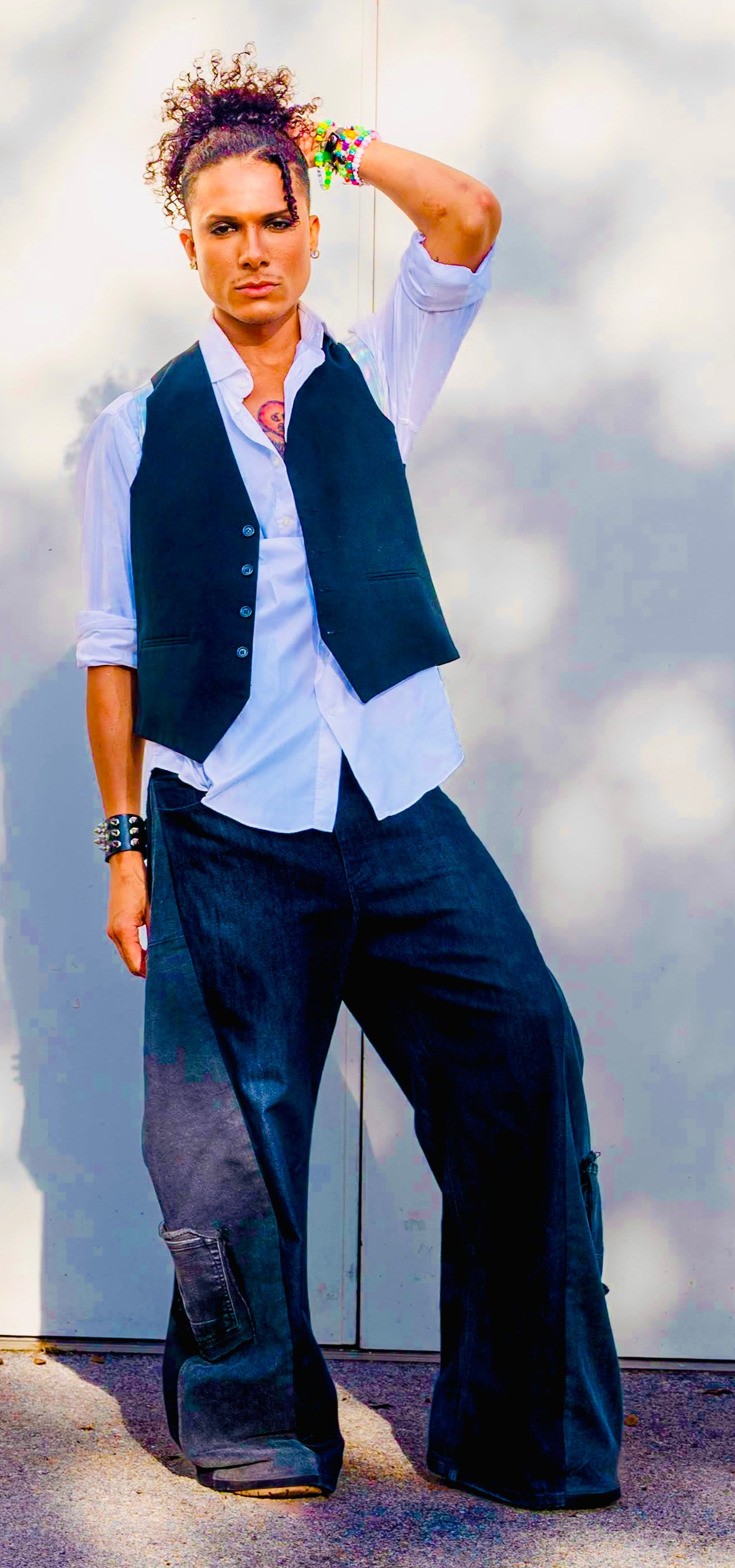 - Handmade, one-of-a-kind Baloon flair baggy jeans crafted from 3 pairs of upcycled jeans